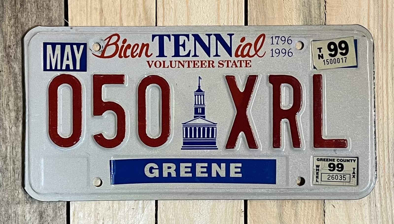 Plaque immatricutlation de l’état du Tennesse. modèle des 200 ans de l’état (plaque originale)